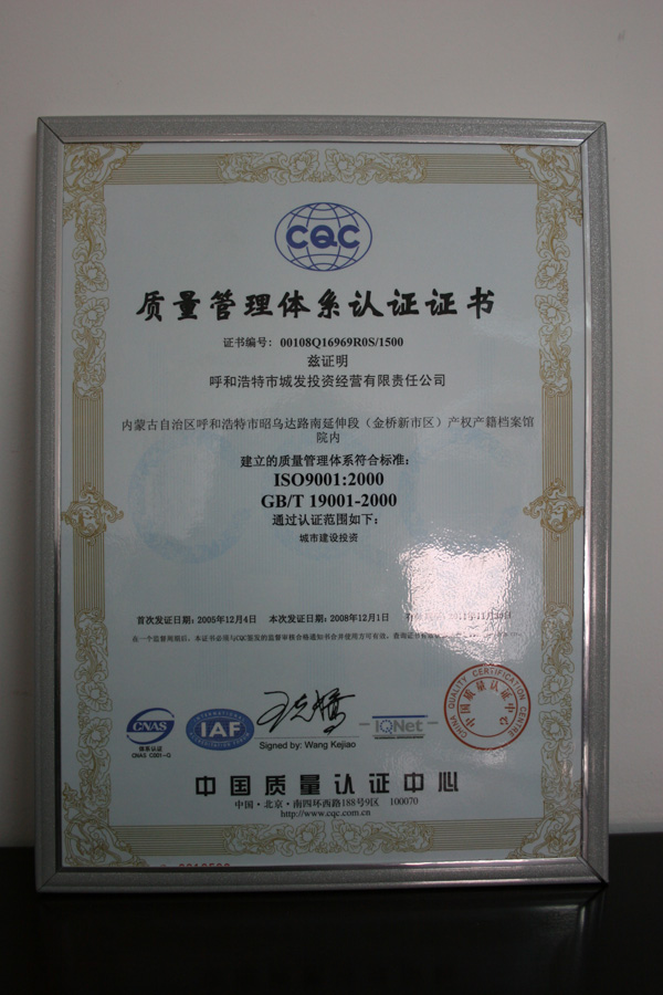 質(zhì)量管理體系認證證書